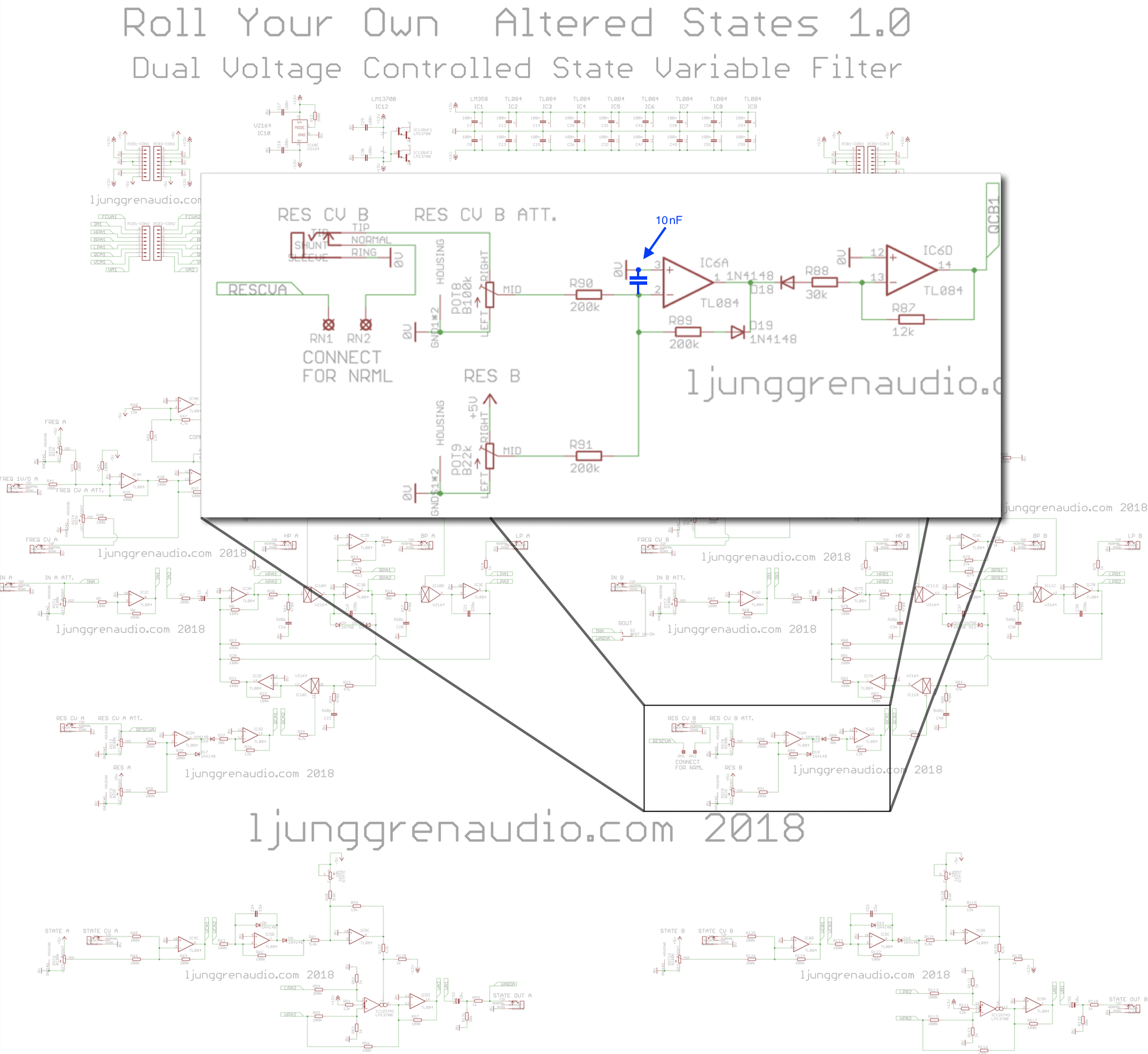 Das RYO Altered States ist ein Dual State Variable Voltage Controlled Filter als Eurorack-Modul von Ljunggren Audio. An sich klingt das Modul schon sehr gut, von sauber bis sehr rau und schöne Eigenresonanzen. Man kann es schön übersteuern und mit dem Überblenden von HP, BP und LP kann man schöne Effekte erzeugen.